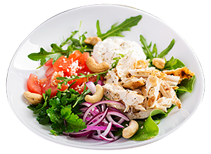 Avocado, buffallo mozzarella, tomatoes, pesto sauce, pine nuts, garden salad, E.V.O.O
